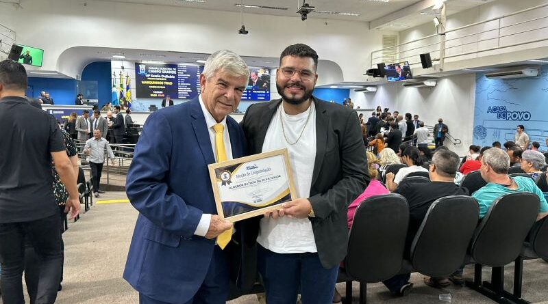 Vereador Veterinário Francisco homenageia Aldenor Batista da Silva Júnior com moção de congratulação